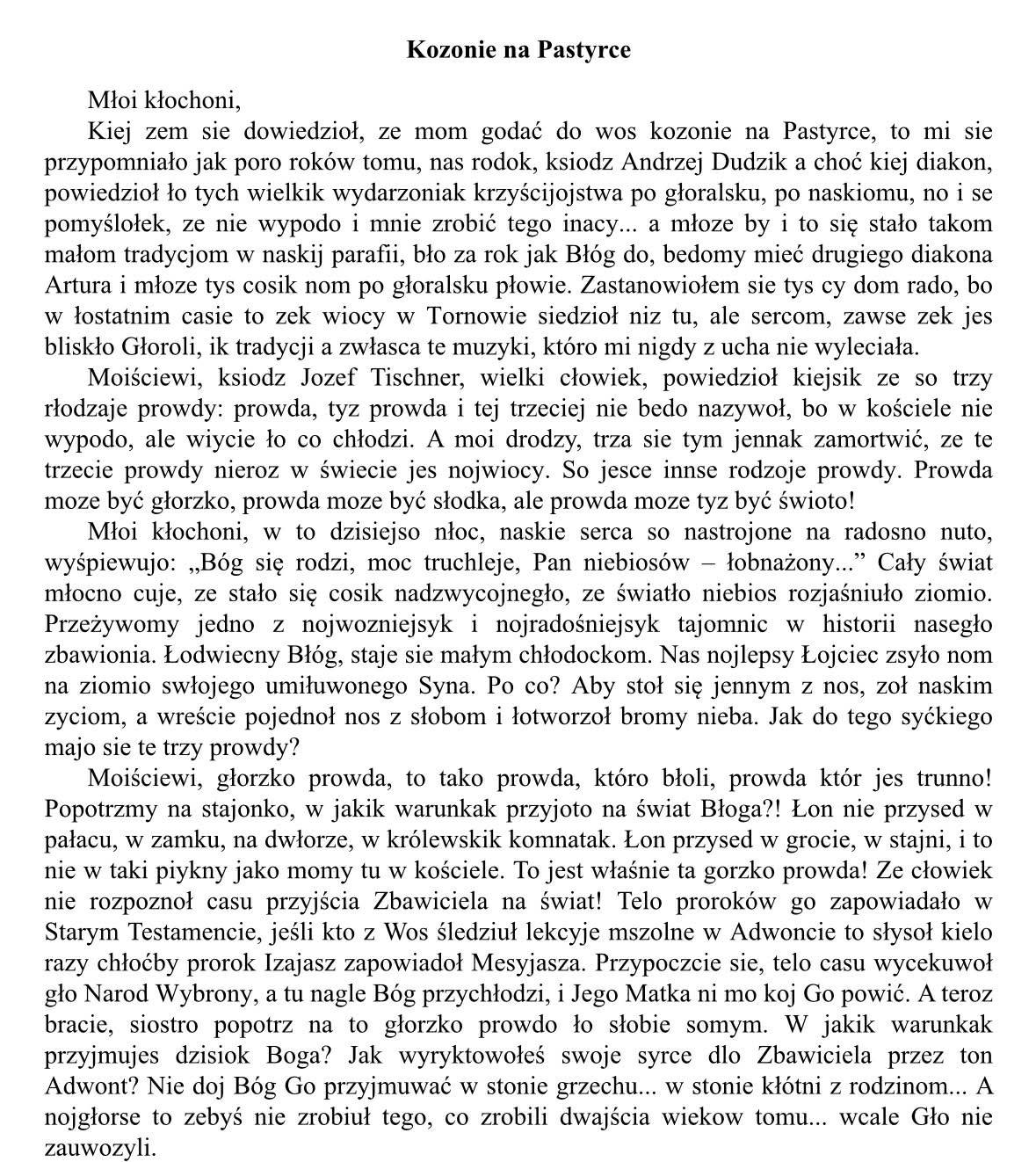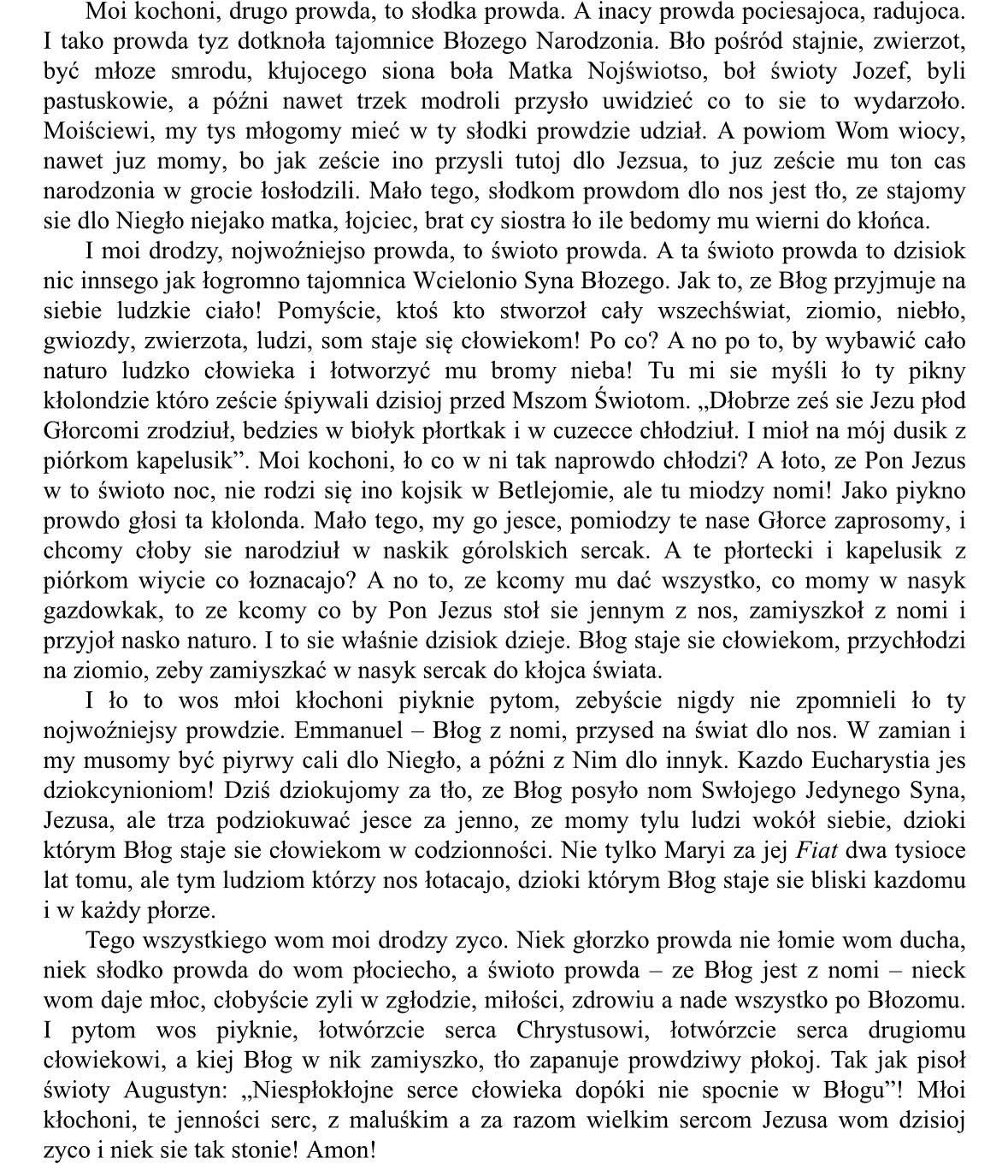 Pasterka w Kamienicy w oprawie muzycznej i wokalnej z zespołem regionalnym Gorce oraz z kazaniem naszego rodaka dk. Arkadiusza.